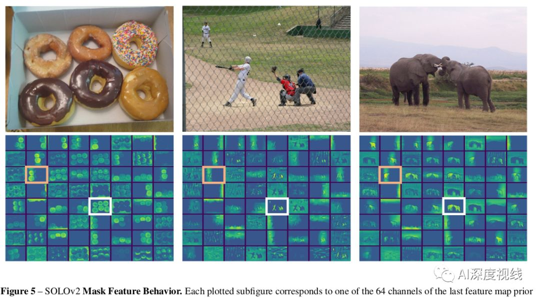 Mask feature 分支用来预测实例感知特征图F∈R H×W×E,其中E是Mask特征的维数。特征图F将由Mask kernel分支进行卷积。如果使用了所有预测的权重,即S^2分类器,则最终卷积后的输出实例蒙版将为H×W×S^2,这与SOLOv1的输出空间相同。
