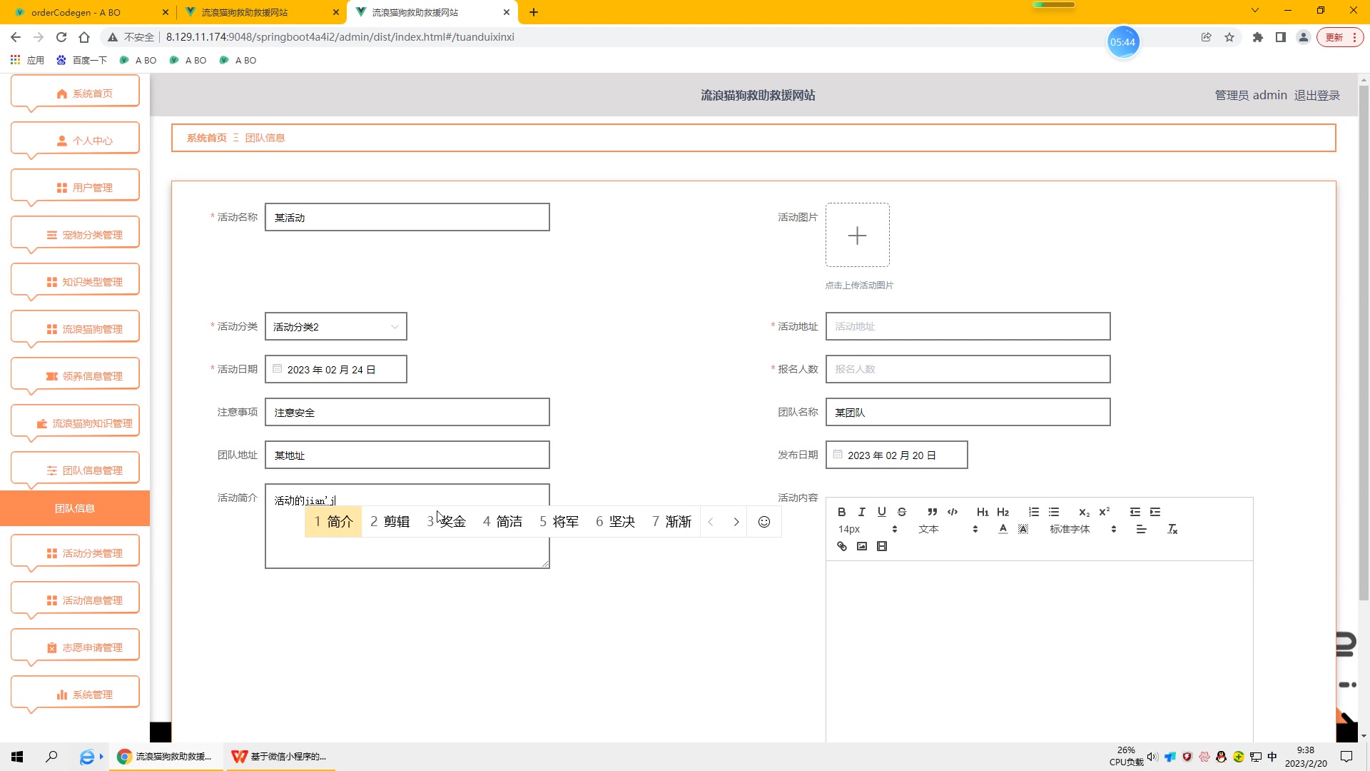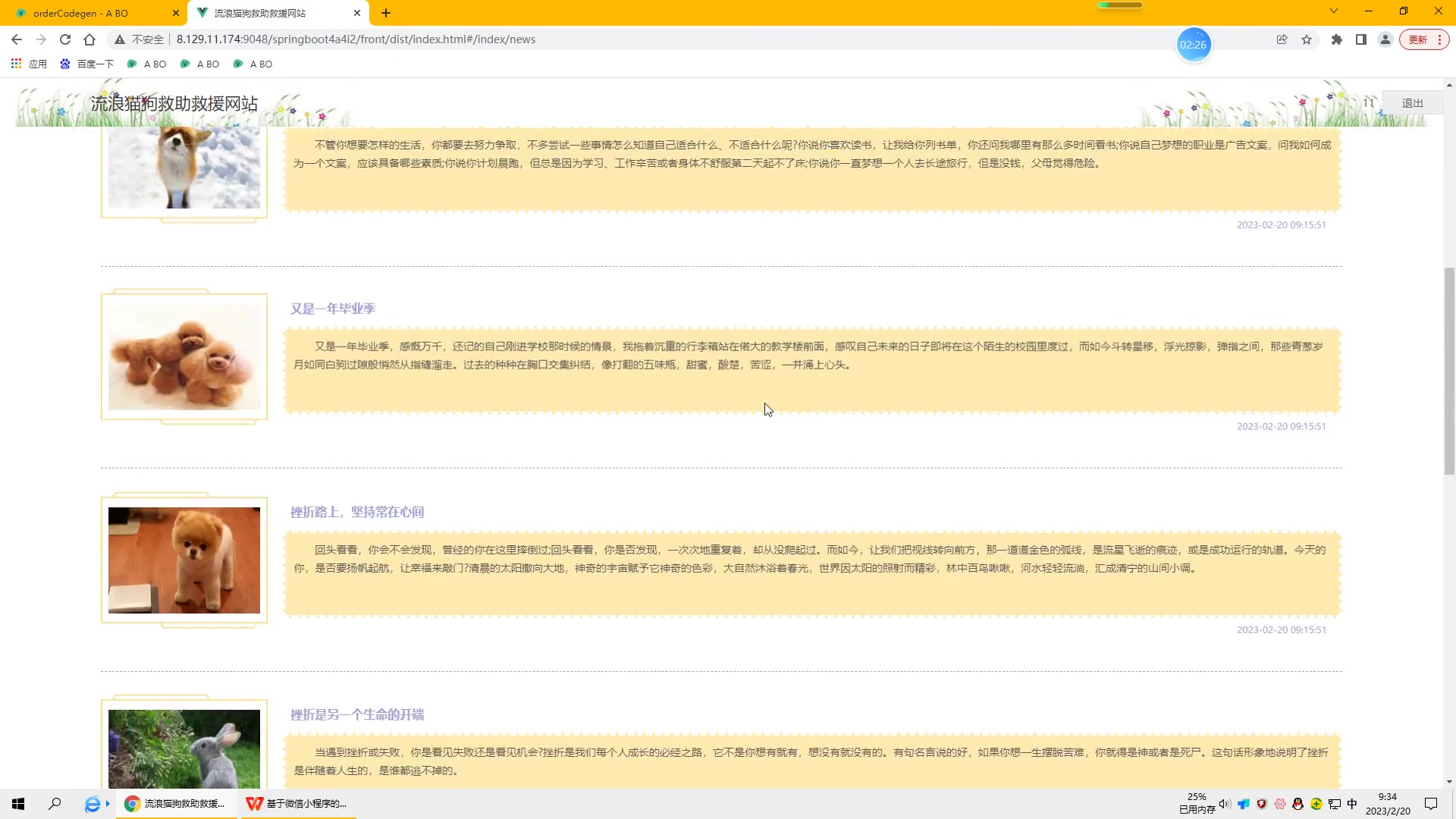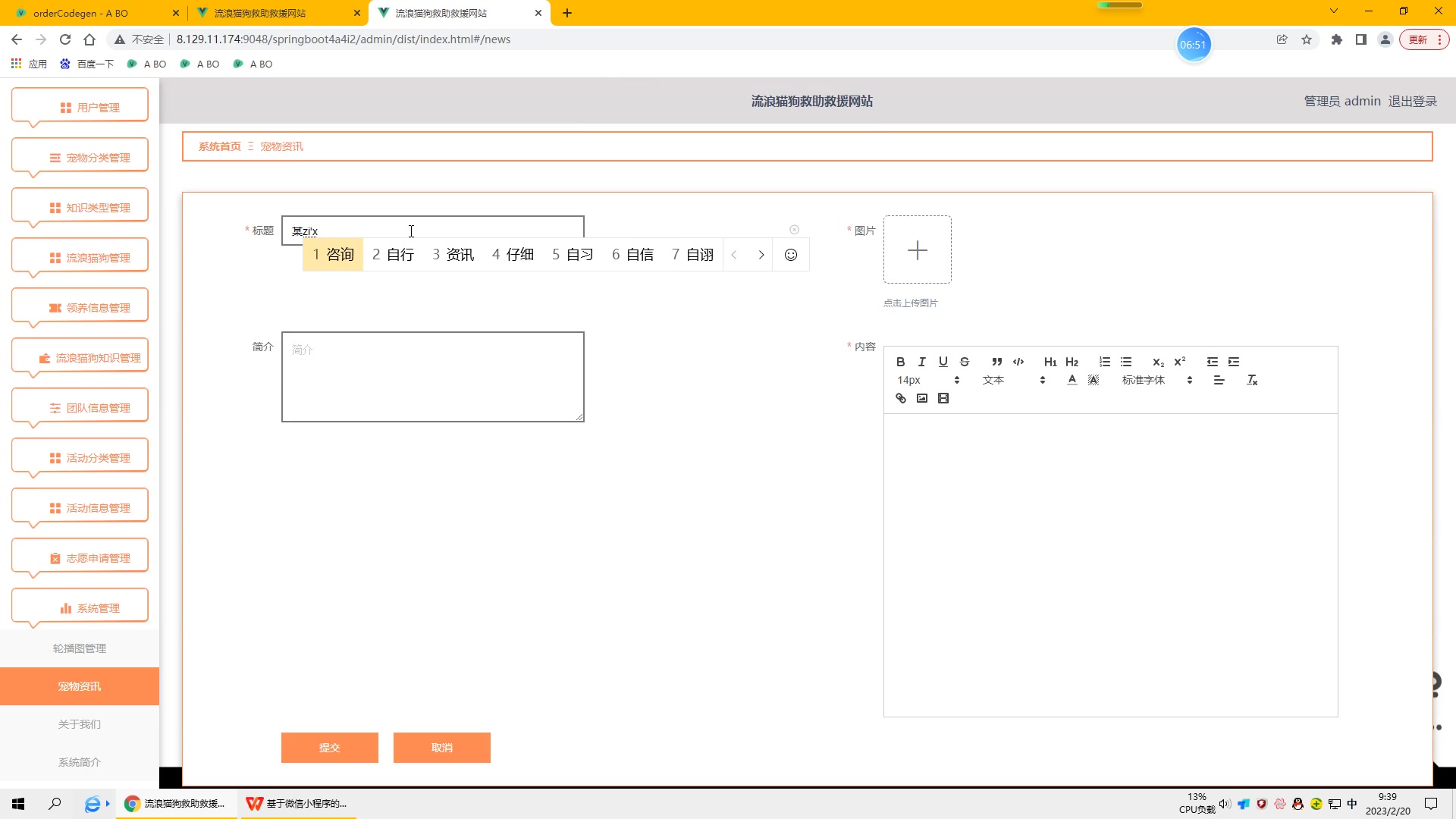 基于此背景,本研究结合管理员即时发布流浪猫狗救助救援信息与用户的需求,设计并实现了流浪猫狗救助救援网站。系统采用b/s架构,java语言作为主要开发语言,mysql技术创建和管理数据库。系统主要分为管理员和用户两大功能模块。通过系统,管理员使用日常浏览器即可随时完成流浪猫狗救助救援信息发布,契合流浪猫狗救助救援管理对时效性需求的同时提高工作效率。最终,根据各个功能模块的测试结果可知流浪猫狗救助救援网站功能基本完善。