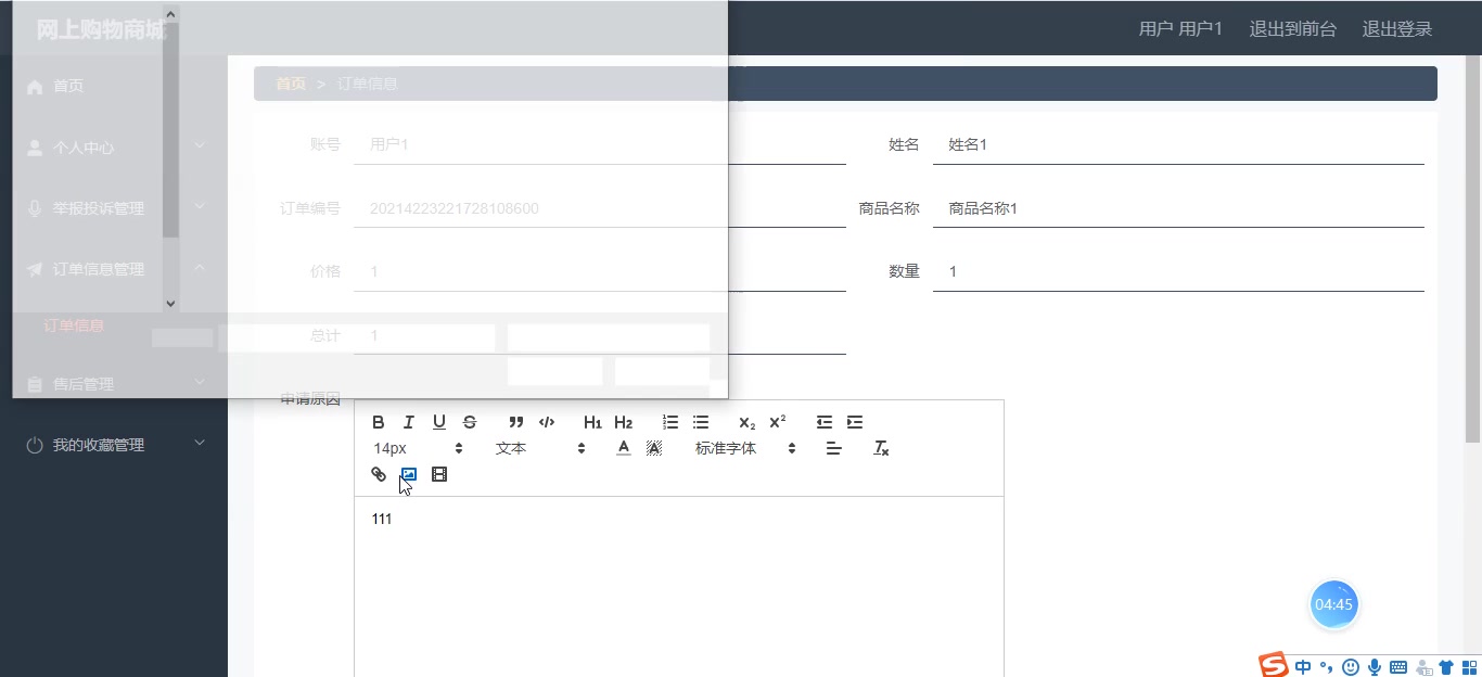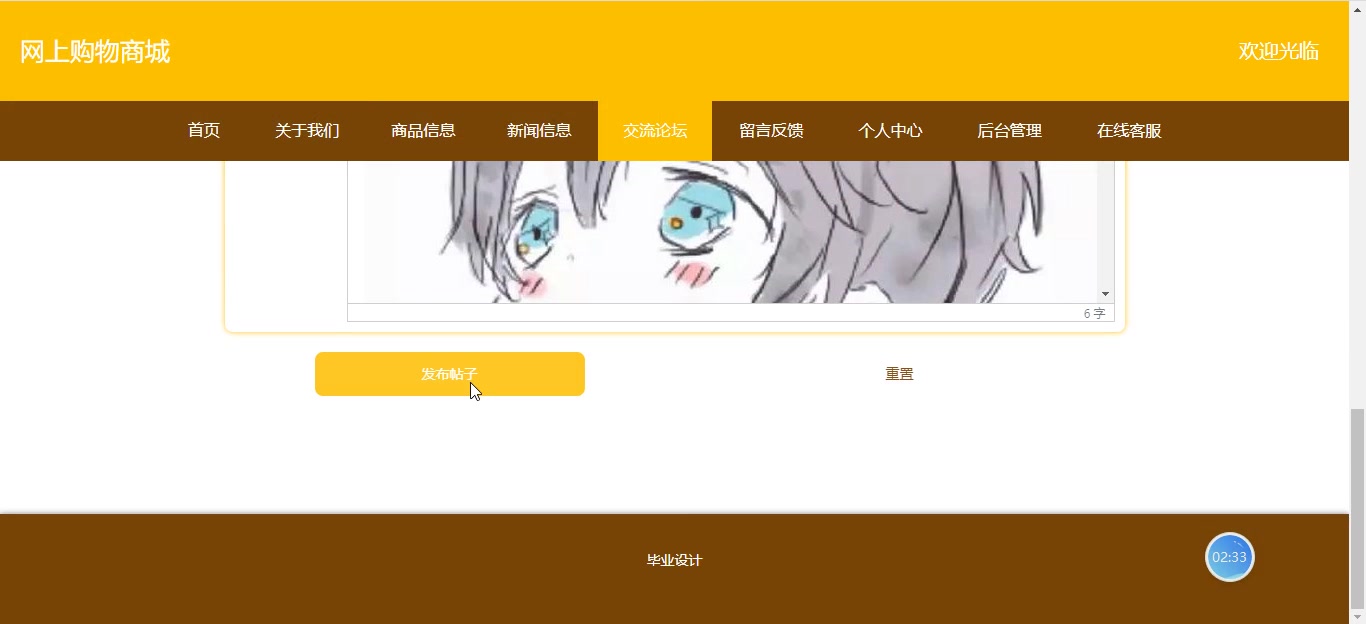 本文研究的网上购物商城基于当前较为流行的b/s结构,采用java技术和mysql数据库进行开发设计。通过本系统,实现了不同权限的用户登录,包括用户和管理员。管理员:首页、个人中心、用户管理、关于我们管理、商品信息管理、商品类型管理、新闻类别管理、举报投诉管理、订单信息管理、售后管理、新闻信息管理、我的收藏管理、留言板管理、交流论坛、系统管理。用户:首页、个人中心、举报投诉管理、订单信息管理、售后管理、我的收藏管理,前台首页;首页、关于我们、商品信息、新闻信息、交流论坛、留言反馈、个人中心、后台管理、在线客服等功能。本系统经过测试,运行效果稳定,操作方便、快捷,是一个功能全面、实用性好、安全性高,并具有良好的可扩展性、可维护性的网上购物商城。