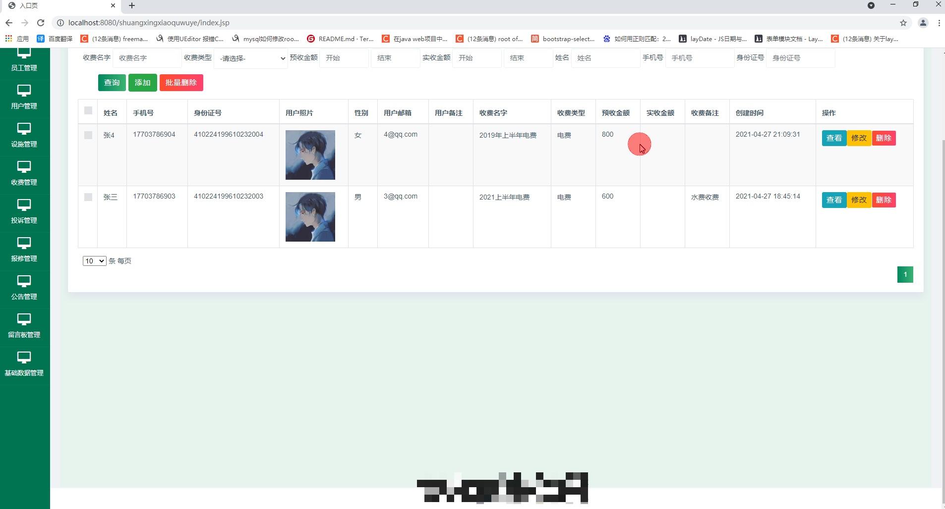 - 收费管理