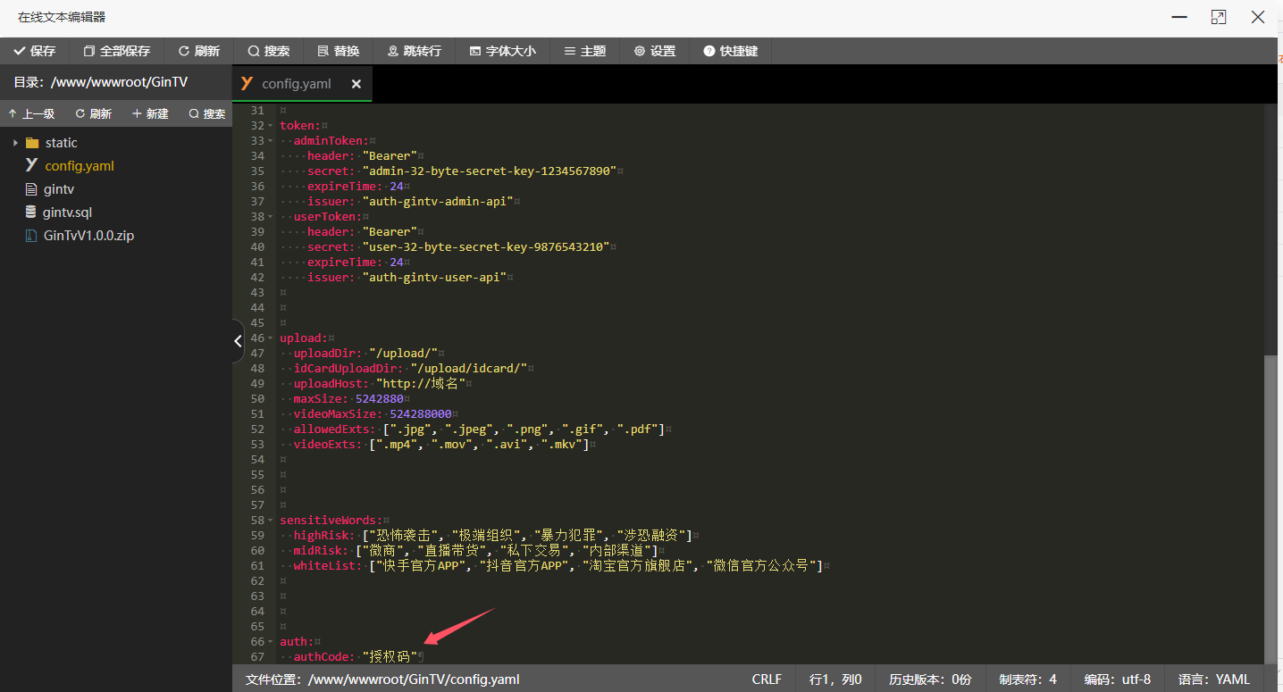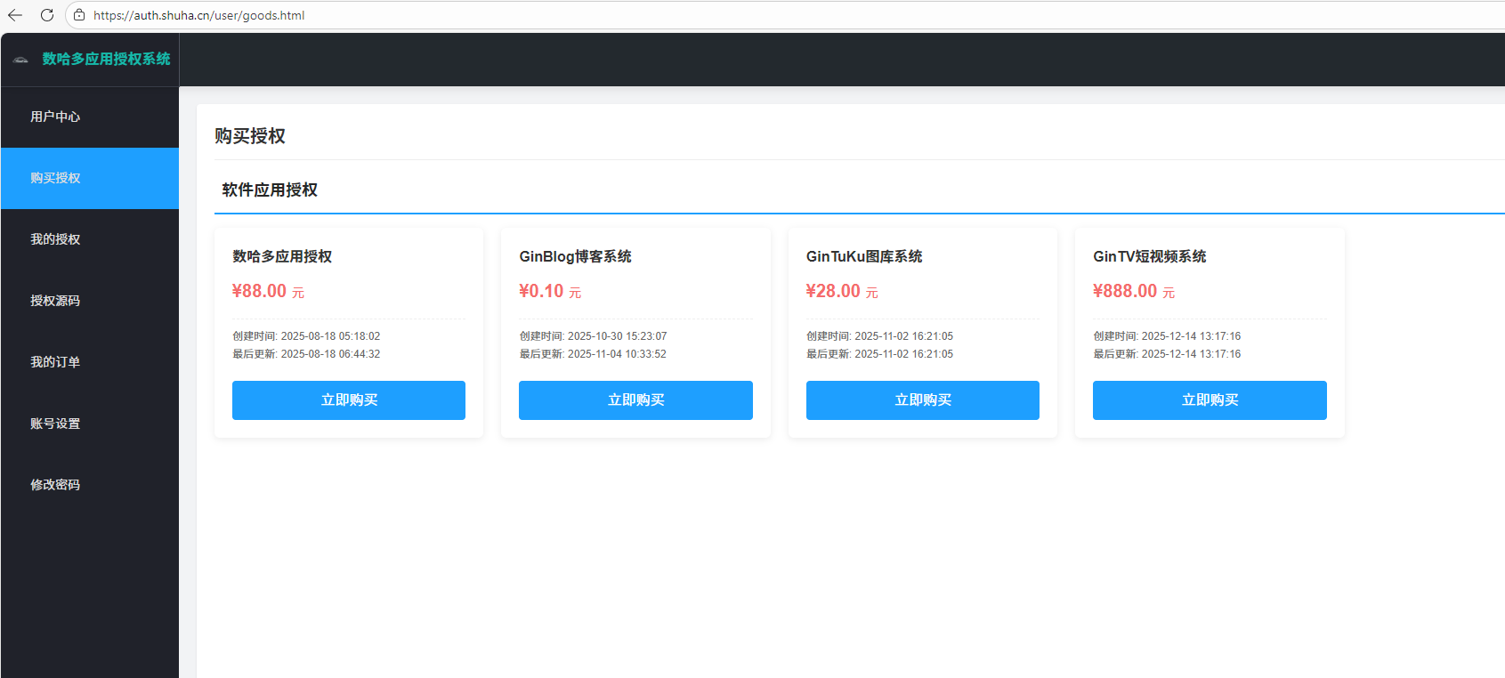 搭建GinTV短视频系统,需前往授权官网:auth.shuha.cn,获取程序授权,并下载源码