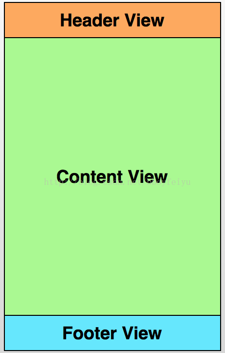 该组件整体以竖直方向的LinearLayout为根视图,分别是Header、ContentView、Foooter, 从上到下依次排列下来,其中ContentView的宽高都为match_parent,footer和header的宽、高分别为match_parent、wrap_content,原始效果如图1;在Header、Foooter初始时都会通过设置padding隐藏掉,如图2中的Header设置paddingTop为负的Header的高度值,同理Footer也通过设置paddingBottom为Footer的负的Footer高度来达到隐藏的效果,所以只有 ContentView区域显示出来。当用户下拉到顶端,并且继续下拉时触发下拉刷新操作;当用户上拉到底部, 并且继续上拉时触发加载更多的操作。