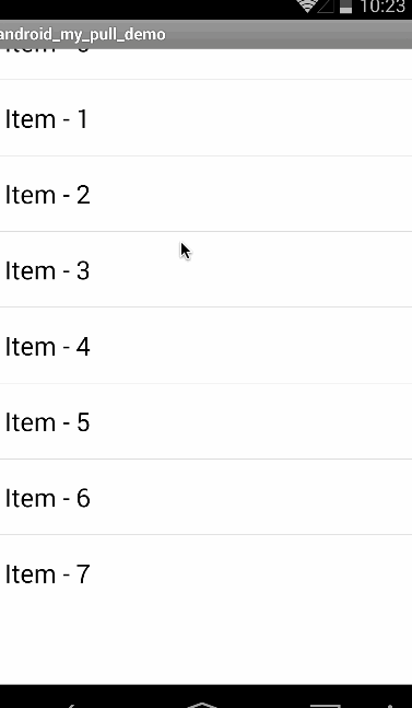 原理都虽然简单,但是实现起来却也是会有很多小麻烦。这里没有采用通过设置onTouchListener的方法,因此使用这个方式在下拉的时候依然会出现ListView的最顶部的"HOLD"视图,不太爽。这种实现方法也蛮简单的,具体看郭神的博客 Android下拉刷新完全解析,教你如何一分钟实现下拉刷新功能。