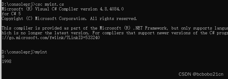 C#中的int类型占4字节(4*8=32位)内存空间,其范围从-2,147,483,648 到 2,147,483,647;