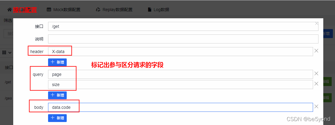 - 接口配置,标记出参与区分请求的字段