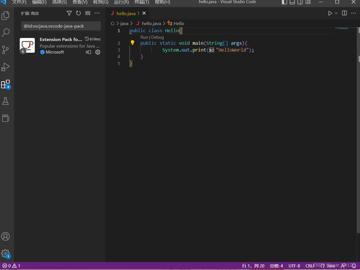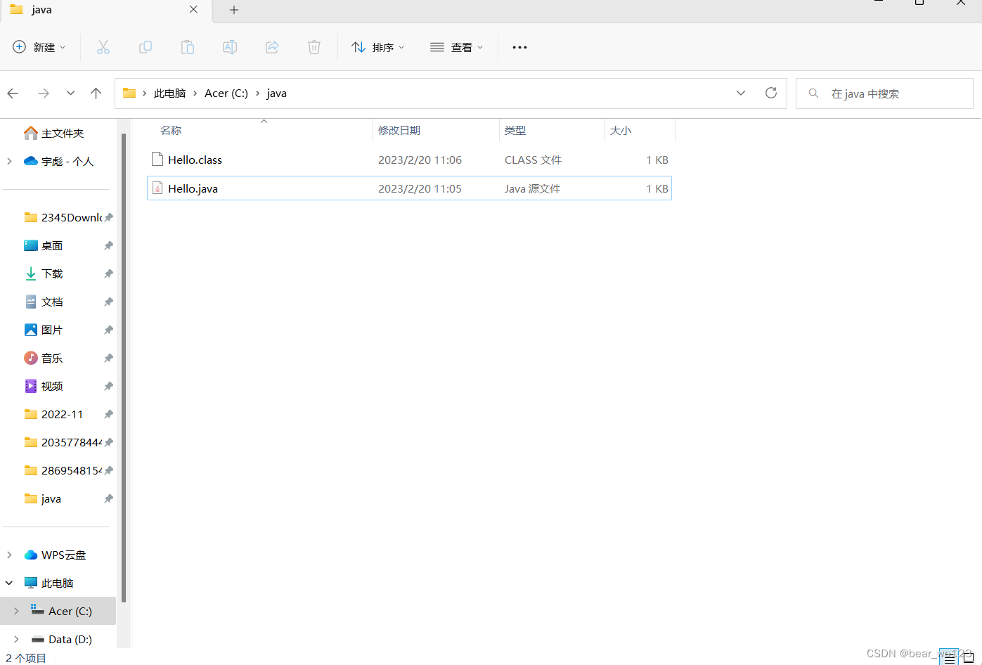 创建一个文本文档命名Hello.java(把文件扩展名.txt删掉)