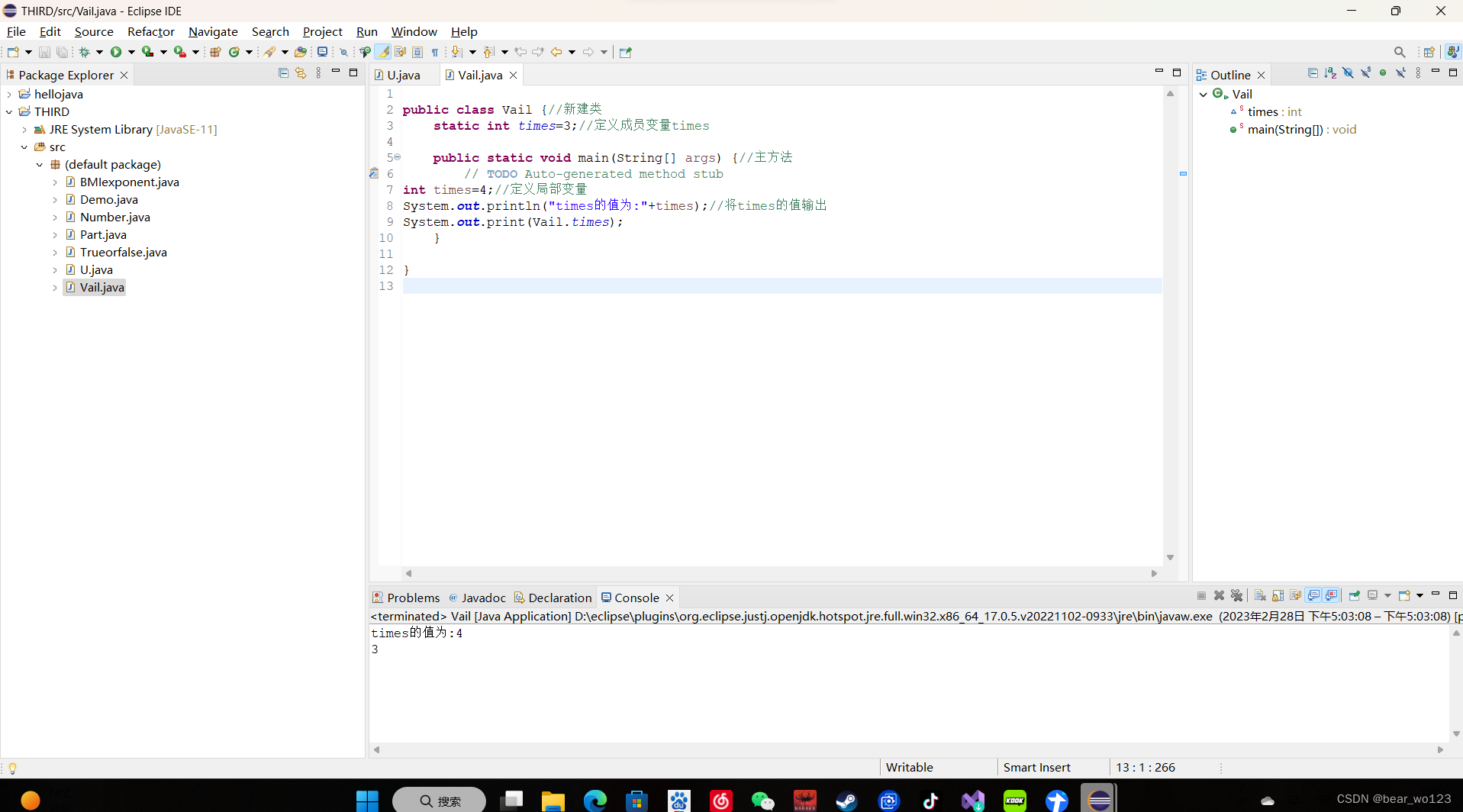 定义一个名为static的整形变量int,内容为 times=3(这是一个成员变量)
