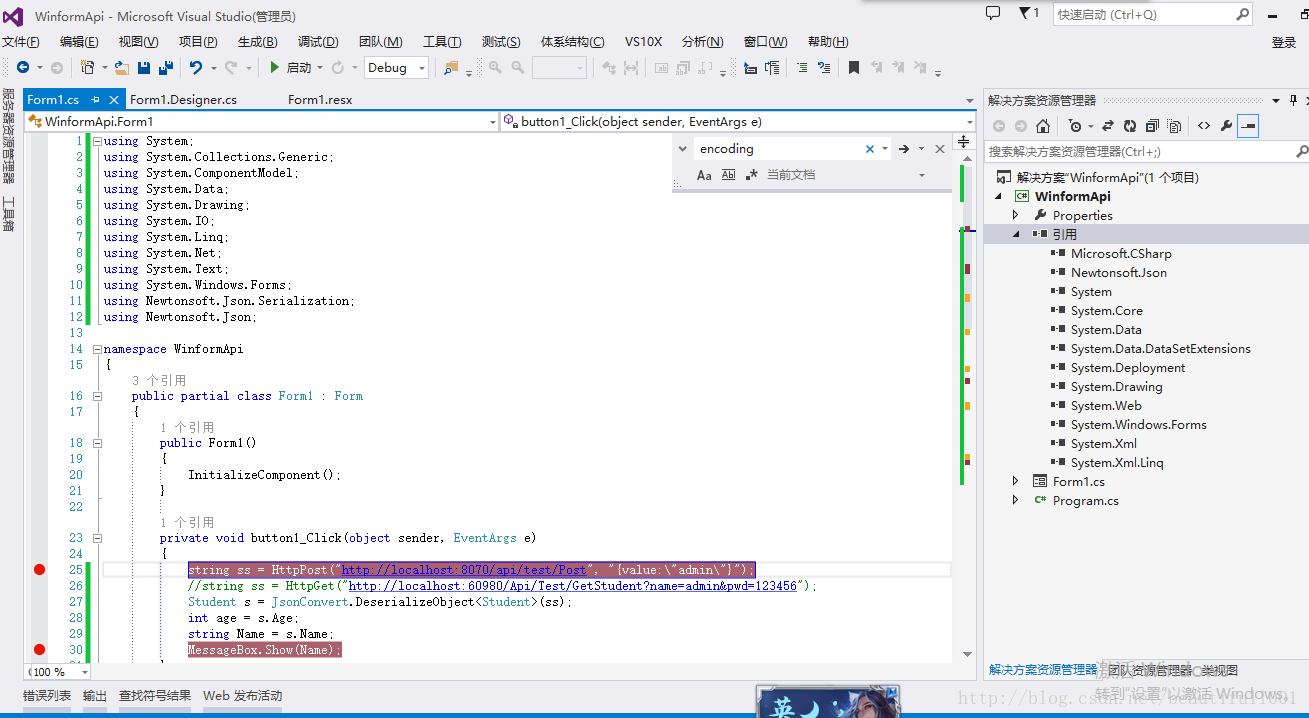 因为本人接触的项目属于C/S结构的偏多,一直没有机会接触webApi,所以一直觉得webApi很神秘。刚好最近有时间,所以我就在网上搜了一些webApi的资料,然后结合winform写了一个Dome: