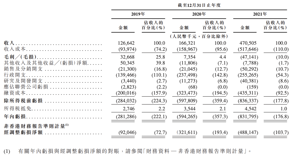 财务方面,美中嘉和2019年、2020年和2021年的营收分别为1.27亿元、1.66亿元和4.71亿元,年内亏损(净亏损)分别为2.81亿元、5.94亿元和8.32亿元,在非香港财务报告准则下的经调整净亏损分别为9204.6万元、3.22亿元和4.88亿元。