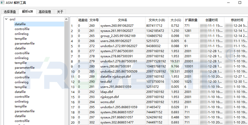 b、解析8个1T大小的lun组成的oralce ASM文件系统,提取其中的数据库文件。