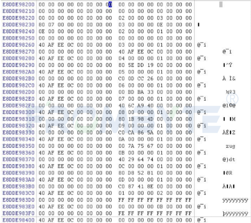 1、将故障服务器上磁盘编号后取出。由硬件工程师对所有磁盘进行硬件故障检测,未发现有硬盘存在物理坏道和其他硬件故障。将所有硬盘以只读方式做全盘镜像,镜像完成后将磁盘根据编号按照原样还原到原服务器中。后续的数据分析和数据恢复操作都基于镜像文件进行,避免对原始磁盘数据造成二次破坏。