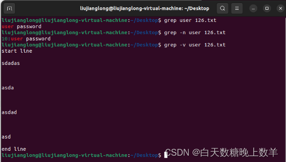 grep -v user 126.txt 反向搜索(搜索不包含user的行)