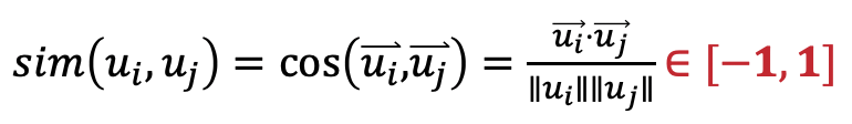 余弦相似度通过计算两用户评分向量间的夹角的余弦值来表示用户间的相似程度,公式如下: