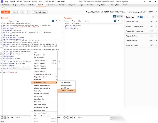 这里可以通过 Burpsuite 自带的 CSRF Poc 工具进行攻击,不过在使用的时候也有一些小技巧。