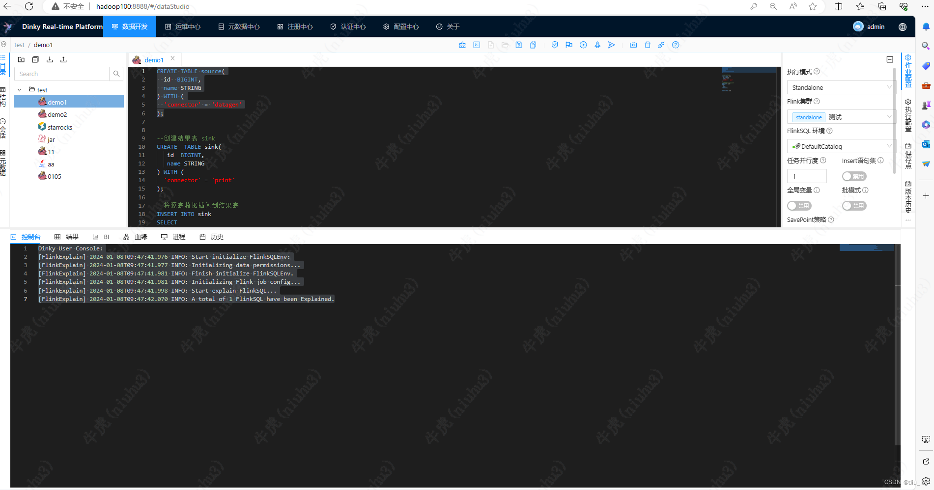 从Dinky聊聊Flink的二次开发 这几天研究了一下Dinky,确实是一款很不错的软件,功能很强大,也很实用,可以极大的方便我们flink sql的开发工作,同时他也支持其他一些主流数据库的SQL,像starrocks。Dinky号称基于Flink二次开发,没有侵入Flink,所以这一点就值得我们学习,为了了解Dinky我自己也搭建了一套Dinky环境,确实使用起来非常舒适 ,搭建过程也是比较容易,下面简单列一下搭建过程。