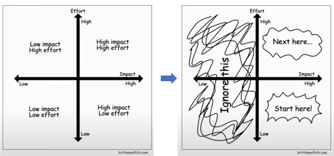 任何低影响的工作,无论费力与否,都应该被有意识地忽略。避免团队将宝贵的精力浪费在价值不大的事情上,直到它们有朝一日变成了高影响的问题。