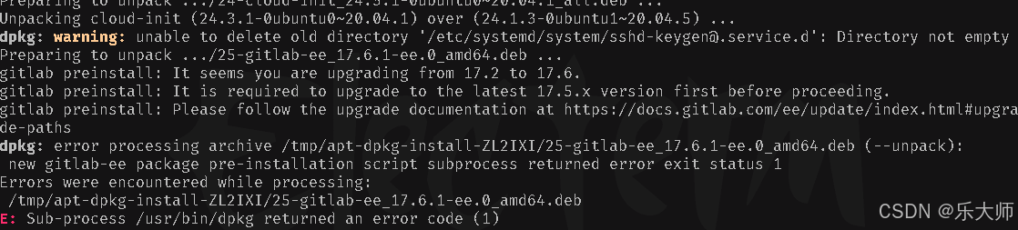 较长时间没有升级了,于是执行apt upgrade进行升级。