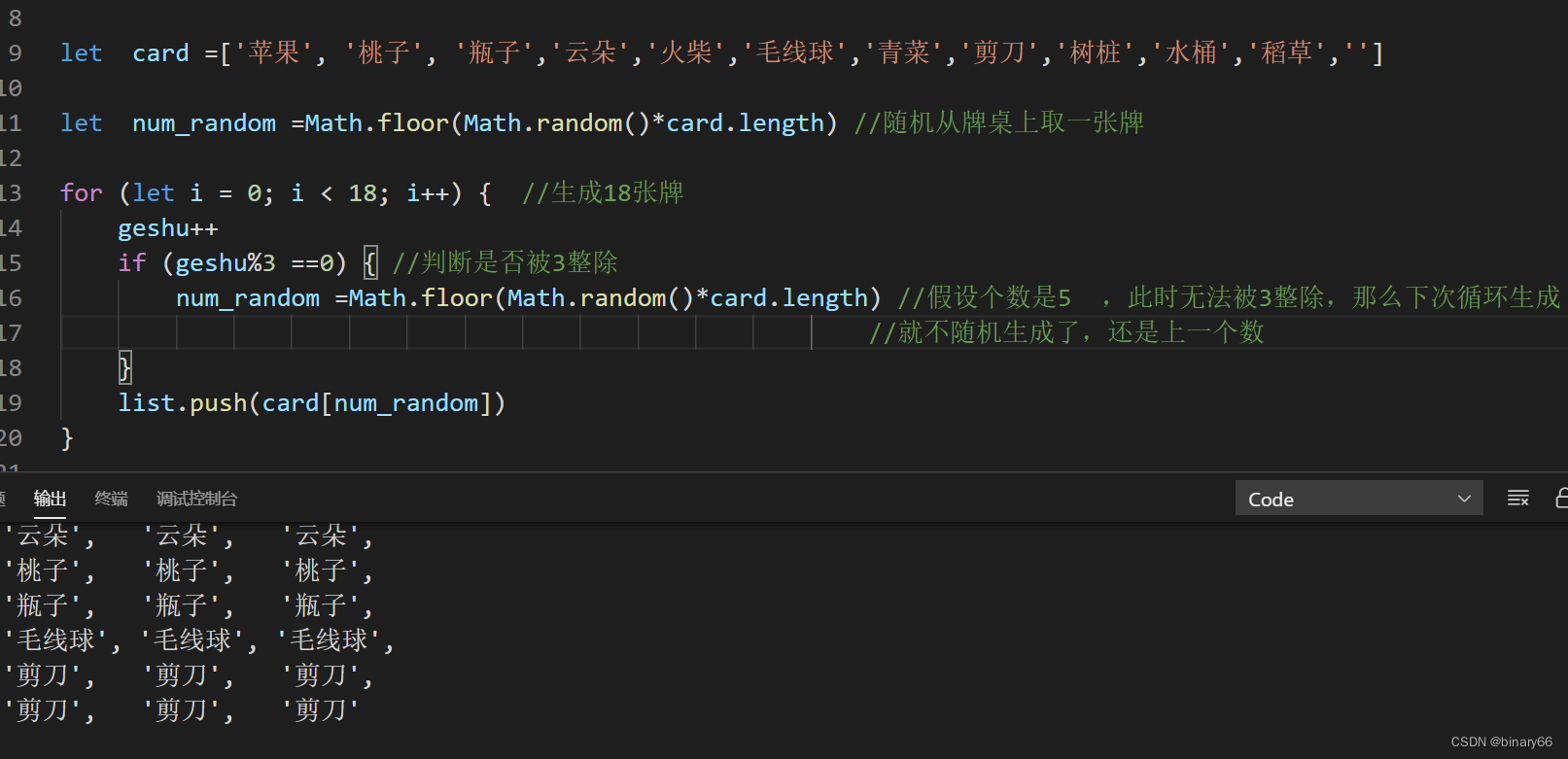 for (let i = 0; i < 18; i++) { //生成18张牌