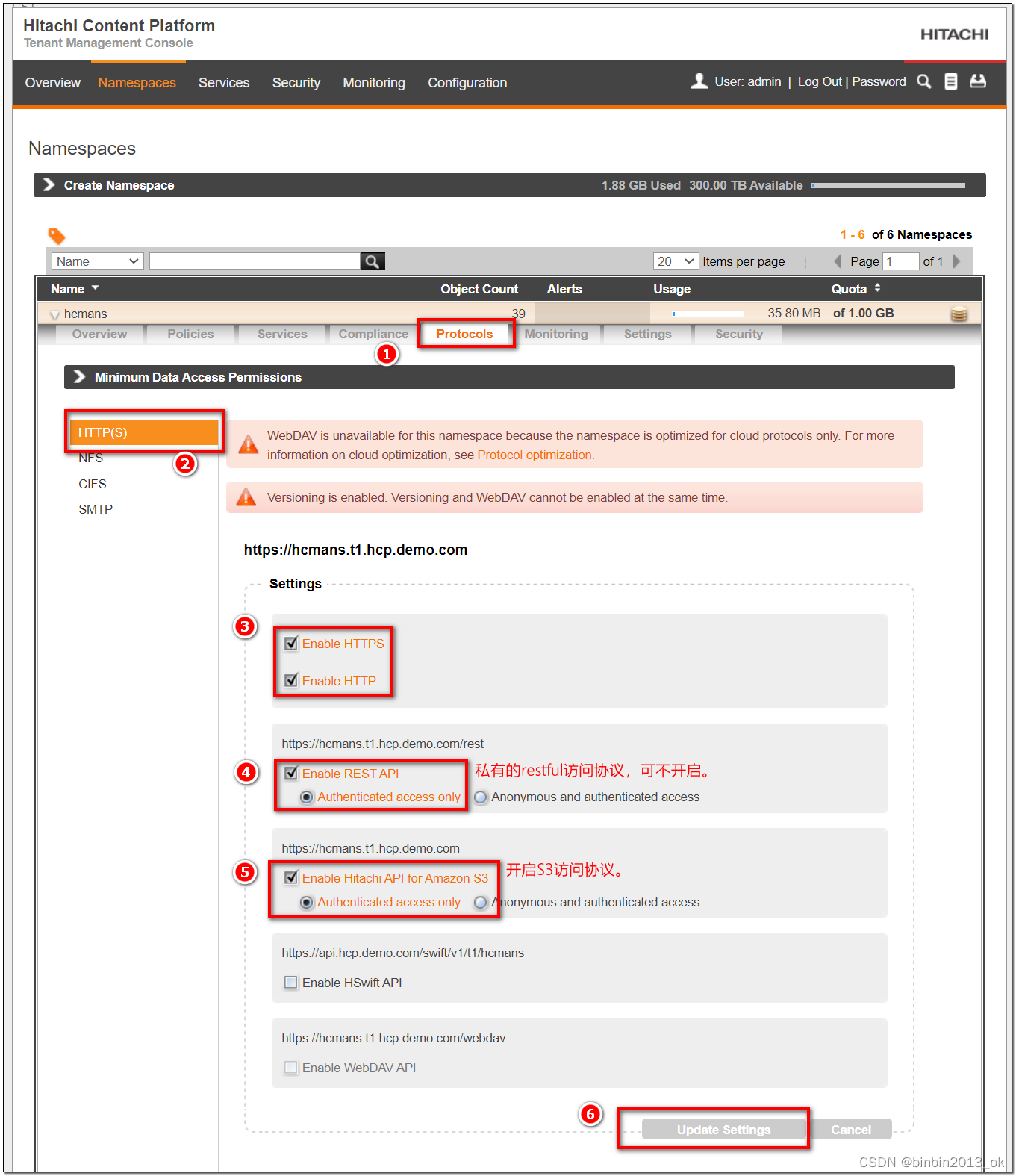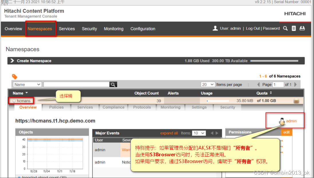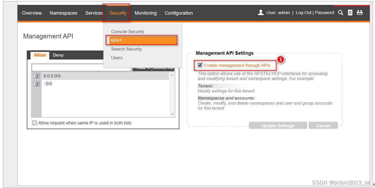 2.1 - 开启租户的MAPI,否则无法列出桶(listbucket)