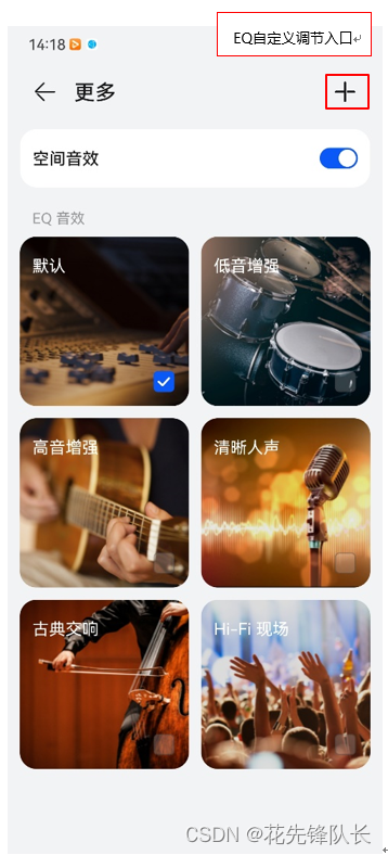 ②手机设置>蓝牙>耳机设置页面>更多功能>音效>空间音效(仅华为手机支持)