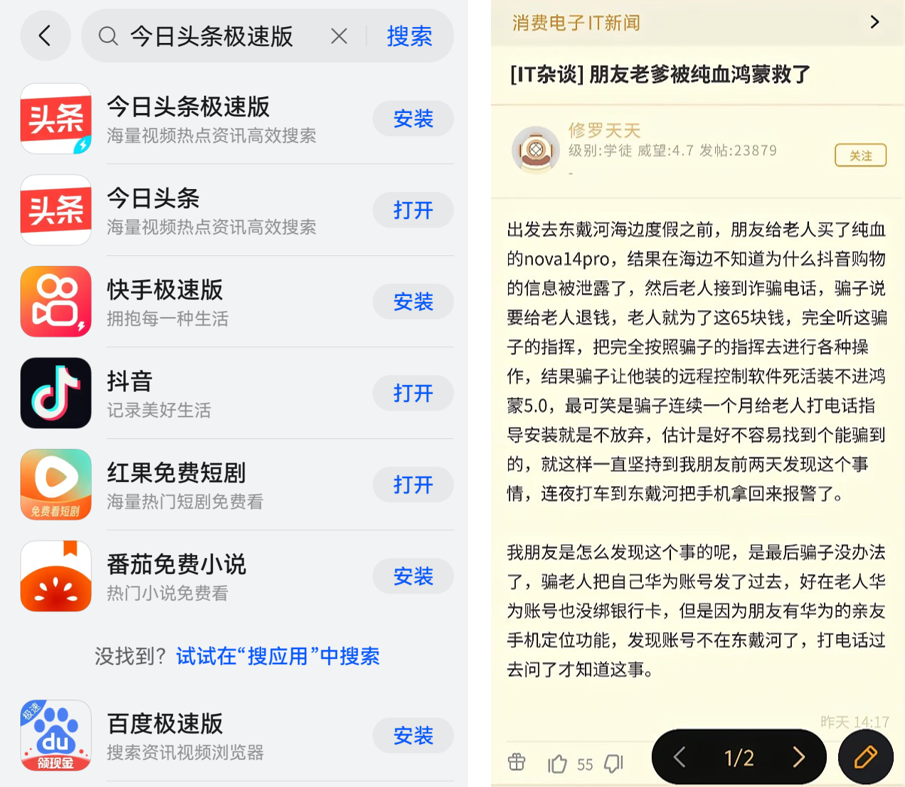 看看近期有位博主分享朋友家长辈被诈骗分子盯上的亲身经历,幸亏应用安装管控拦截了非法应用,最终成功拦截了一场蓄谋已久的诈骗,避免了损失,可见系统安全的重要性。
