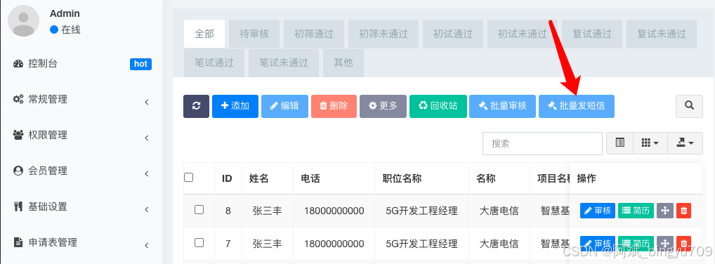 最近在做一个人力资源招聘管理系统,中间有个功能:批量给求职者发送短信,这就是本文要说的中间,直接上步骤: