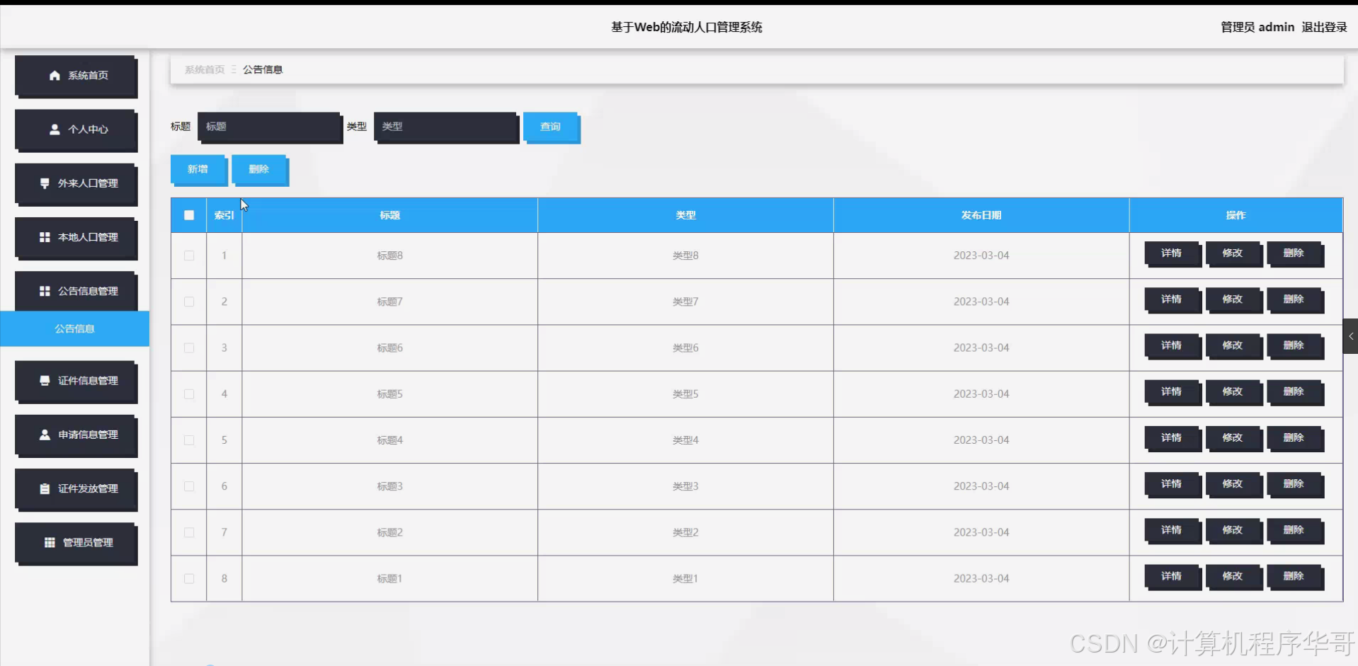 随着社会经济的快速发展和城市化进程的加速,人口流动已成为现代社会的普遍现象。无论是为了寻求更好的就业机会,还是为了追求更高的生活质量,大量的人口在城市之间、城乡之间频繁流动。这种流动不仅促进了经济的交流与融合,也对城市管理和服务提出了新的挑战。流动人口的管理涉及到诸多方面,如居住登记、就业服务、社会保障、教育医疗等,这些都需要一个高效、便捷的管理系统来支撑。因此,构建流动人口管理系统成为当前城市管理中的重要课题,旨在通过信息化手段实现对流动人口的有效监管和服务。