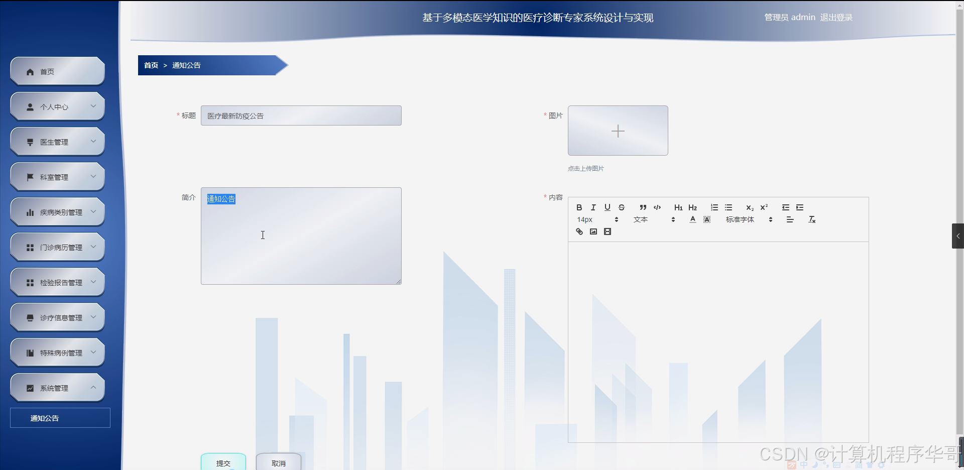 疾病类别管理模块则负责维护系统中的疾病分类体系,包括疾病的名称、症状、诊断标准等。这些信息可以为医生提供疾病诊断的参考依据。