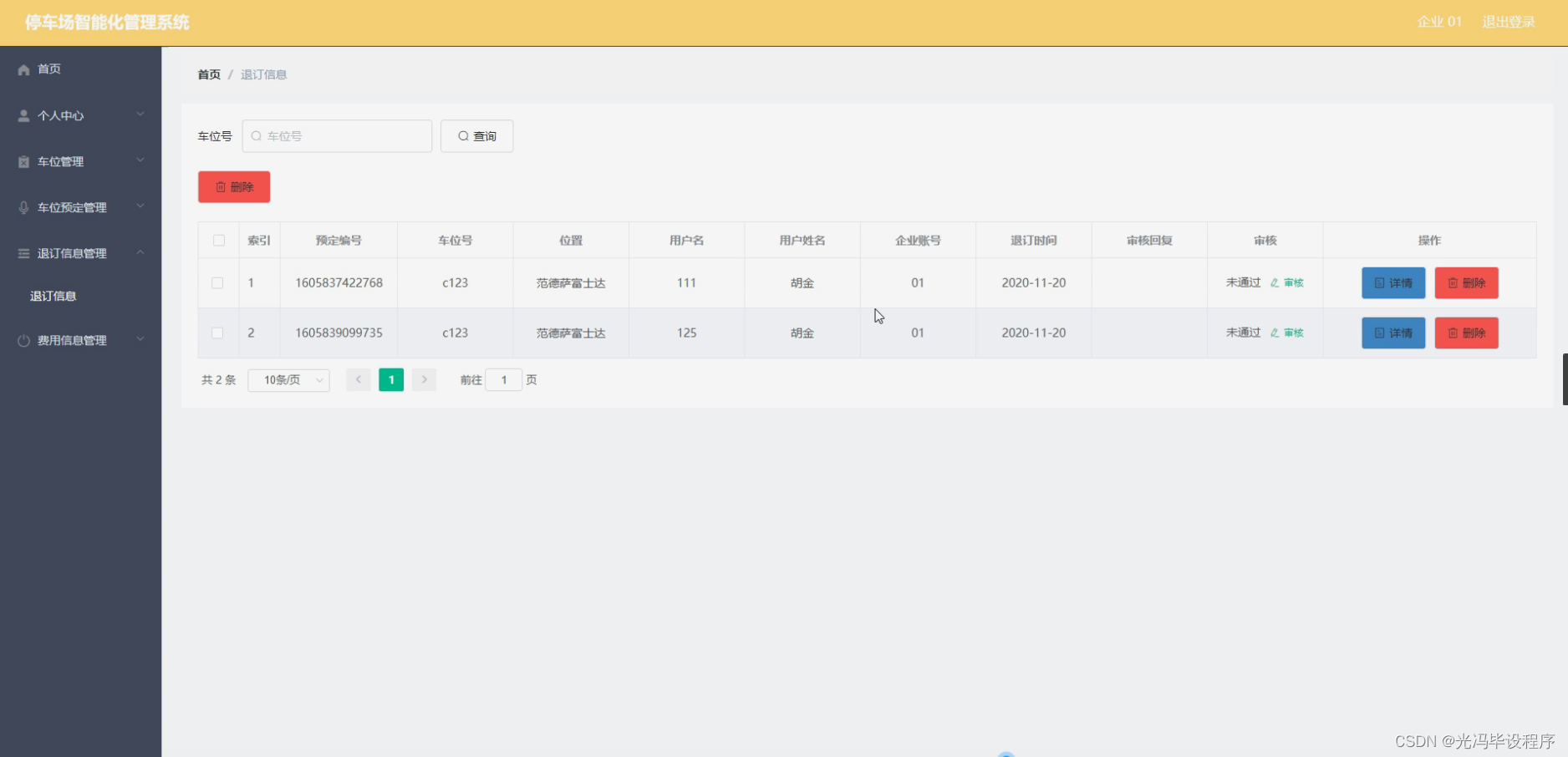 - 支持在线预定和退订车位,减少车主的停车时间;