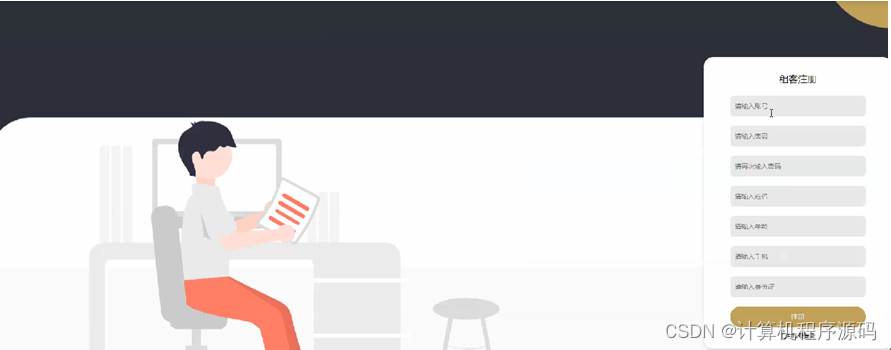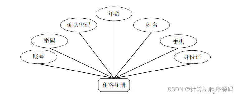 租客注册,在租客注册页面通过填写账号,密码,确认密码,姓名,年龄,手机,身份证等内容进行注册操作,如图5-3所示。