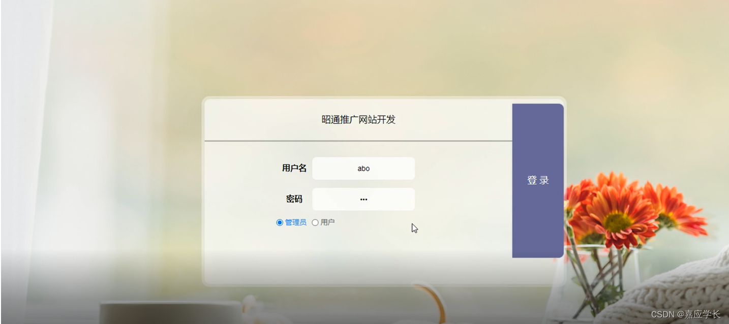 管理员登录,管理员通过登录页面输入用户名,密码,角色等信息即可进行系统登录,如图5-1所示。