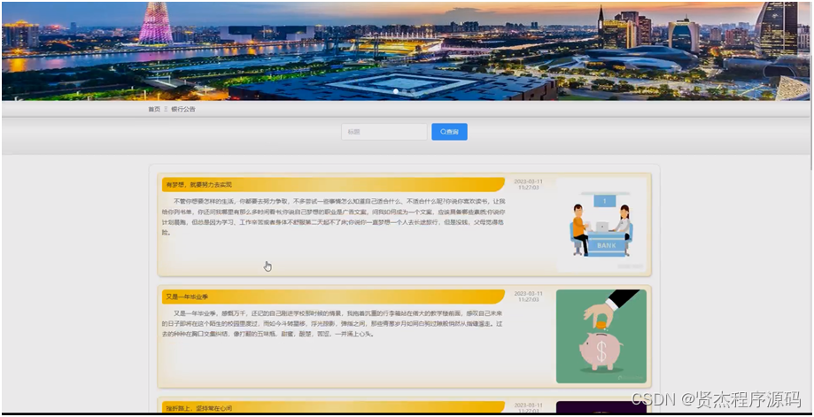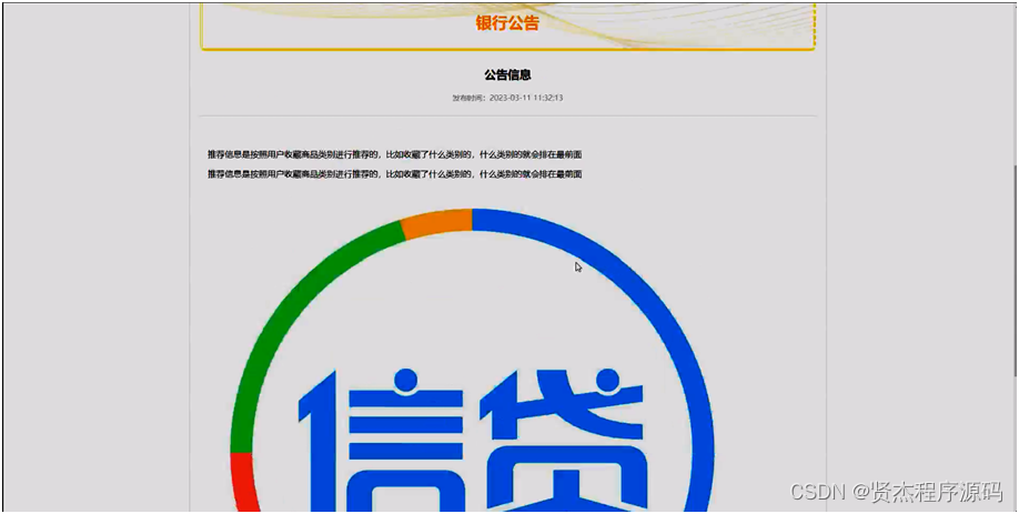 在银行公告页面的输入栏中输入标题进行查询,进入银行公告页面可以查看到银行公告详细信息,页面如图5-4所示: