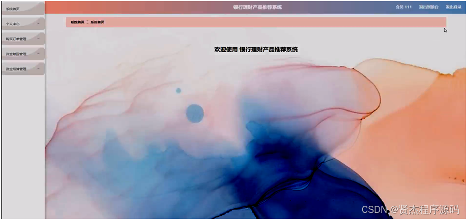 用户登录后台管理,主要包括对个人中心、购买订单管理、资金赎回管理、资金结算管理等进行操作;如图5-6所示。