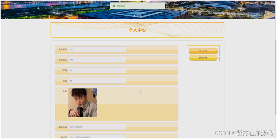 在个人中心页面可以更新个人详细信息,还可以对我的收藏进行详细操作;如图5-5所示: