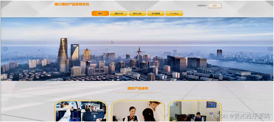 当人们打开系统的网址后,首先看到的就是首页界面。在这里,人们能够看到网上银行理财产品推荐系统的导航条和理财产品、银行公告、后台管理、个人中心等。系统首页界面如图5-2所示: