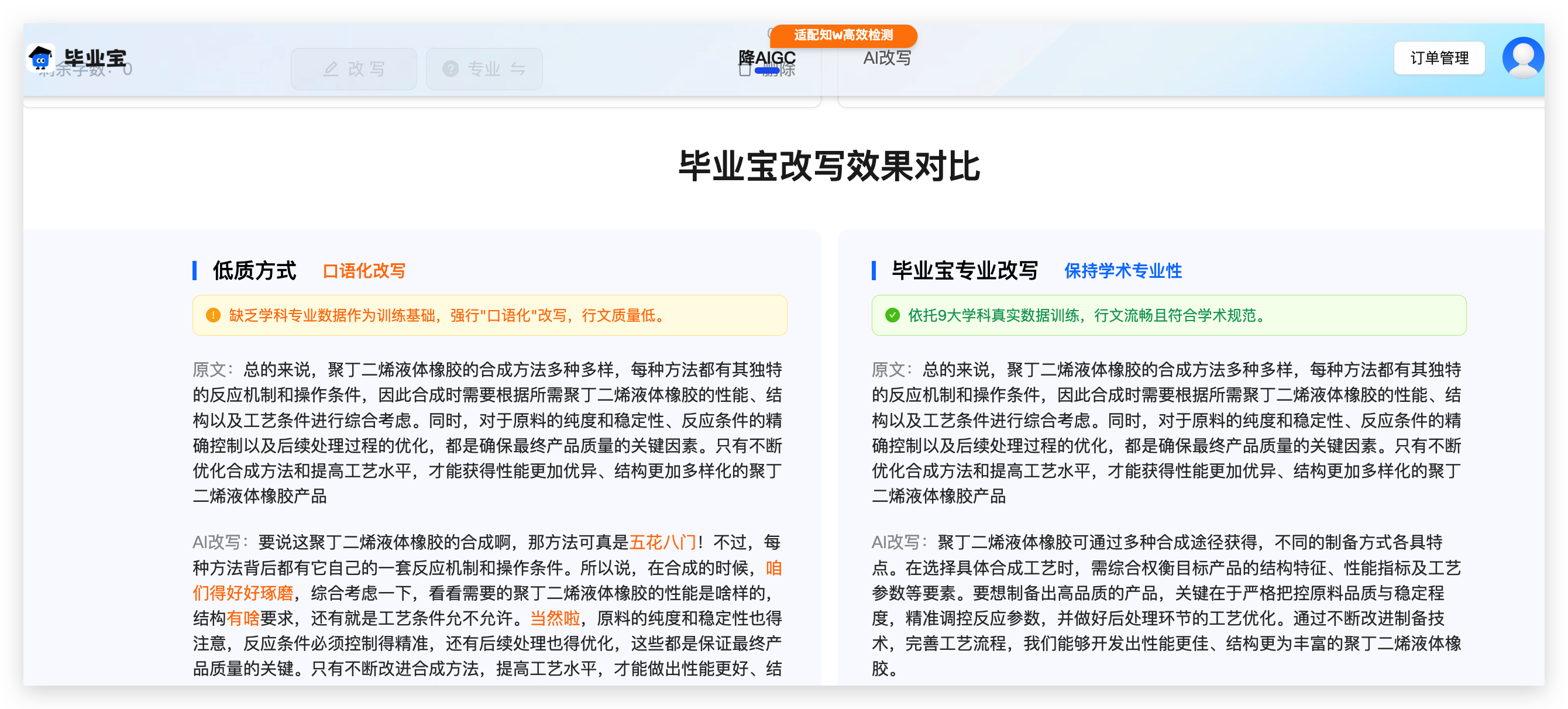 为什么毕业宝能3分钟降80% AI率? 其实呢,毕业宝的算法专门针对AI写作弱点。比如ChatGPT喜欢用长被动句,毕业宝会自动拆分句式;AI逻辑跳跃,工具就插入过渡词。再加上固定专业词汇的功能,改完的文章既合规又学术。