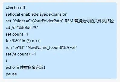 执行简单重命名操作,如添加统一前缀/后缀、替换特定字符、删除部分文本等。无需安装额外软件,利用Windows原生功能。