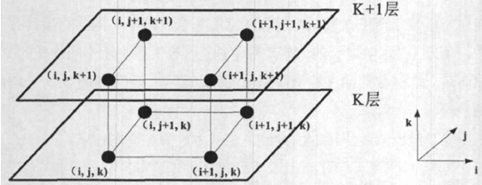 2) 逐层扫描三维数据场,把相邻两层的八个顶点组成的立方体作为当前体素;