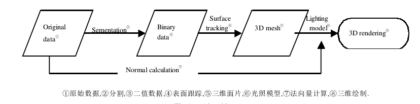 面绘制主要通过平面元来逼近物体表面,目前面绘制主要有切片级重建和体素级重建两种,划分依据就是绘制过程中处理元素的级别不同。由于,切片级重建重建方法有一些技术难点尚待解决,本文只介绍介绍体素级重建方法。