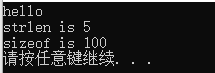 printf("strlen is %d\n", strlen(str5));  // strlen 遇到字符串中间的'\0'停止,计算结果不包含'\0',所以长度为5(即hello)