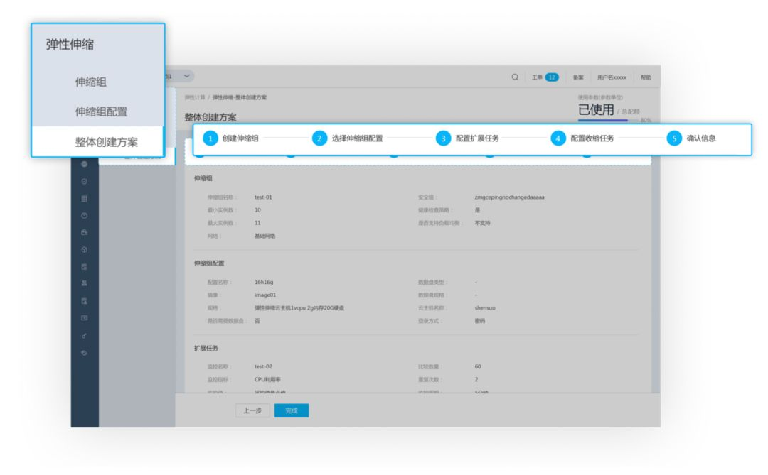 4)弹性伸缩2.0:弹性伸缩服务全新升级,提供弹性伸缩整体解决方案创建,可支持手动触发伸缩规则、手动从伸缩组内添加及移出云主机。