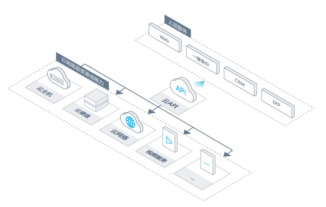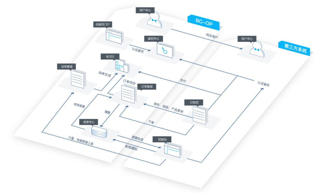 1)云API:将云服务以开放API的方式对外提供,包括用户管理接口、资源订退改续接口、资源管理接口、资源监控接口,便于客户在自有系统中集成相关接口;