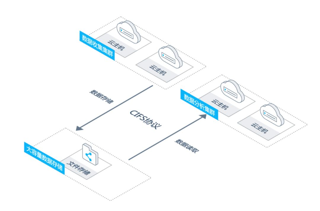 2)文件存储:面向云主机的文件存储服务,提供标准的文件访问协议,适用于企业办公及访问共享资源场景,也可支持部分数据备份场景。