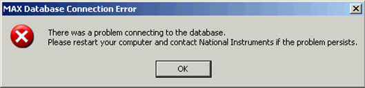 当启动NI MAX或尝试查看我的设备和软件时收到以下错误:
