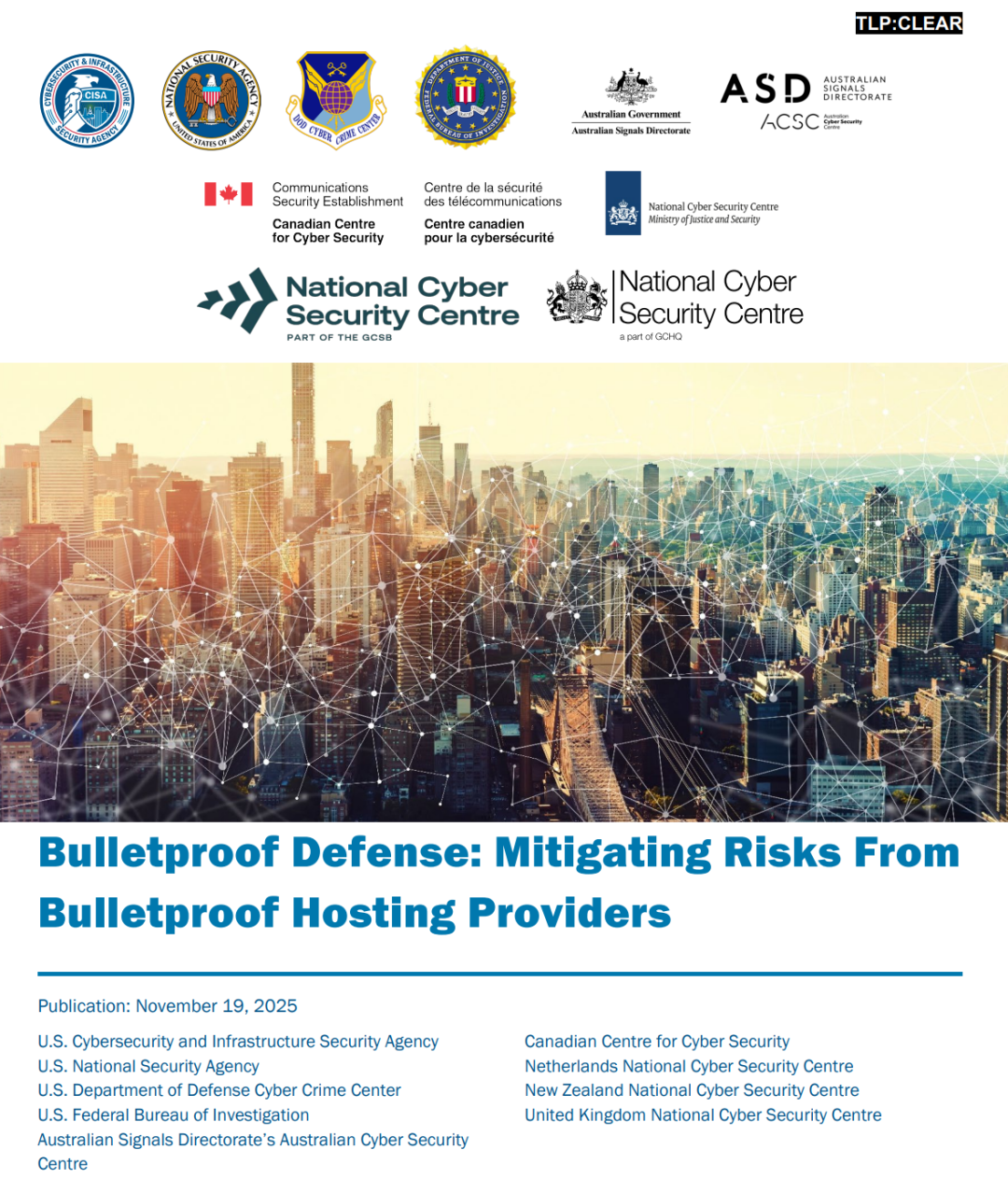 同日,五眼联盟(美、英、澳、加、新)网络安全机构联合荷兰国家网络安全中心(NCSC-NL)发布了《防弹主机基础设施缓解指南》,帮助防御者识别和阻断此类恶意基础设施。该指南强调,这类云主机已深度融入合法互联网生态,单方面行动可能误伤正常服务。