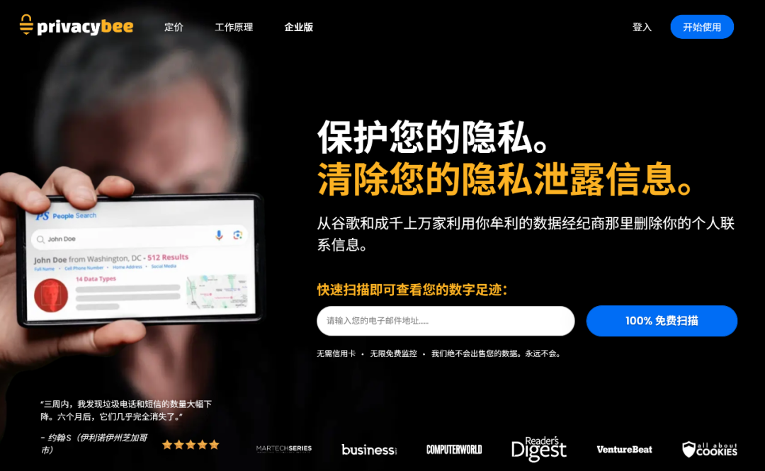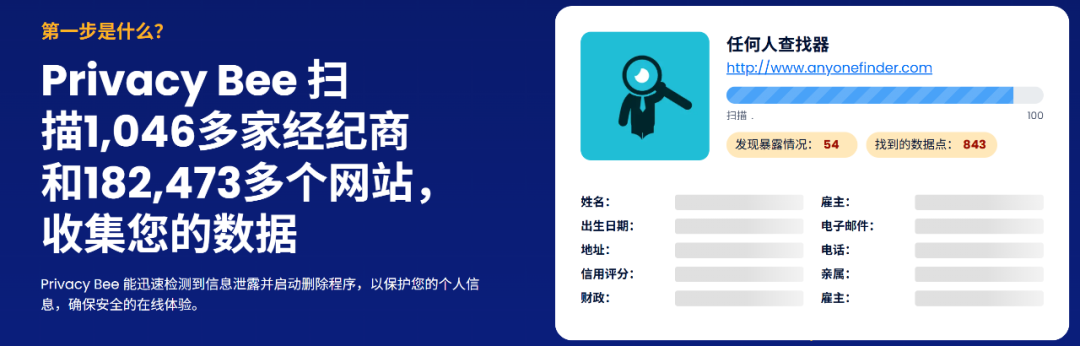 (网站:https://privacybee.com)覆盖范围最广,能从超过1000个数据经纪人网站移除数据。