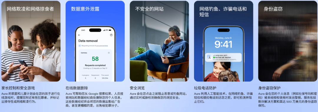 (网站:https://aura.com)是一款多功能隐私套件,集成跨平台防病毒、VPN和密码管理。它提供100万美元身份盗窃补救、暗网监控和信用分数跟踪,能从28个热门数据经纪人中移除信息。