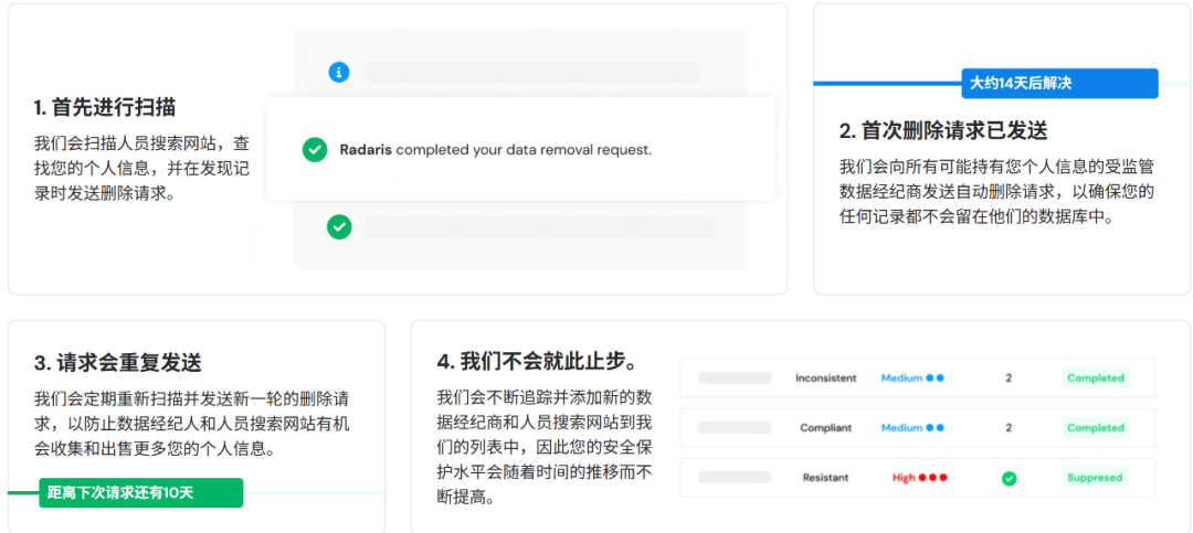 它能查找人员搜索网站上的个人资料,向数据经纪人发送正式移除请求,并定期重复这些请求以抑制数据收集。