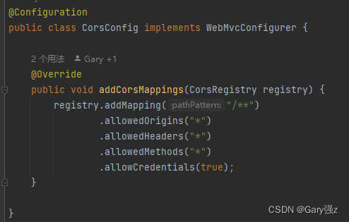 方案二:使用 allowedOriginPatterns:从 Spring Framework 5.3 开始,支持使用 allowedOriginPatterns,它可以使用通配符并且与 allowCredentials 一起使用。
