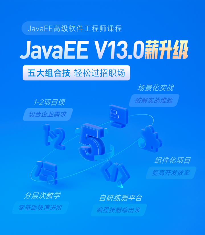 JavaEE V13.0课程区别于“一锅烩”的教学方法,将知识点科学地分为实用篇、高级篇、面试篇,分层次解决不同学习阶段吸收问题。